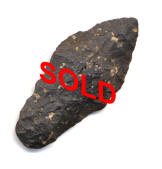 Description: Far West Cougar Mountain - Here is a nice Lancelot type Paleo from Oregon.  It is a Cougar Mountain.  It has very nice symmetry.  It is made of a Black Chert with Tan specks.  This Lithic is a little out of our area, so I am not sure the correct name for the material.  It comes with a Tom Davis COA.