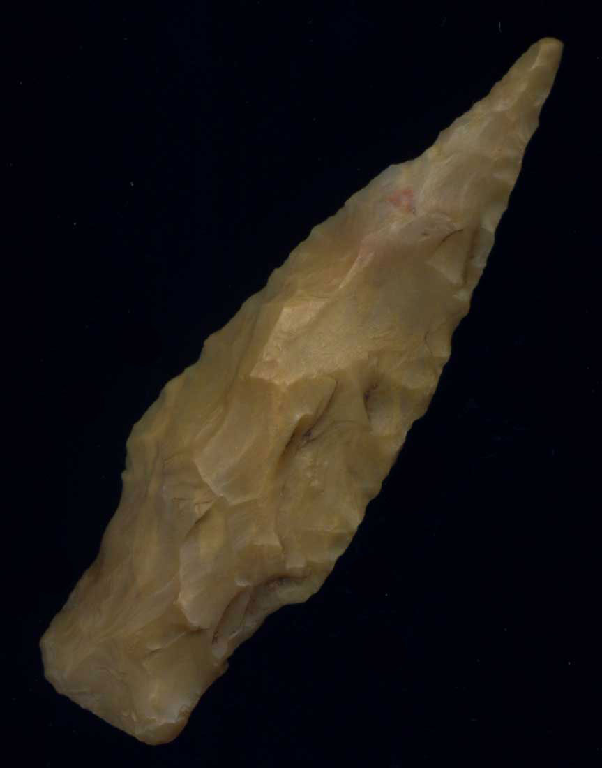 Very nice tip and symmetry. Made of patinated Hornstone. Ex- Monty