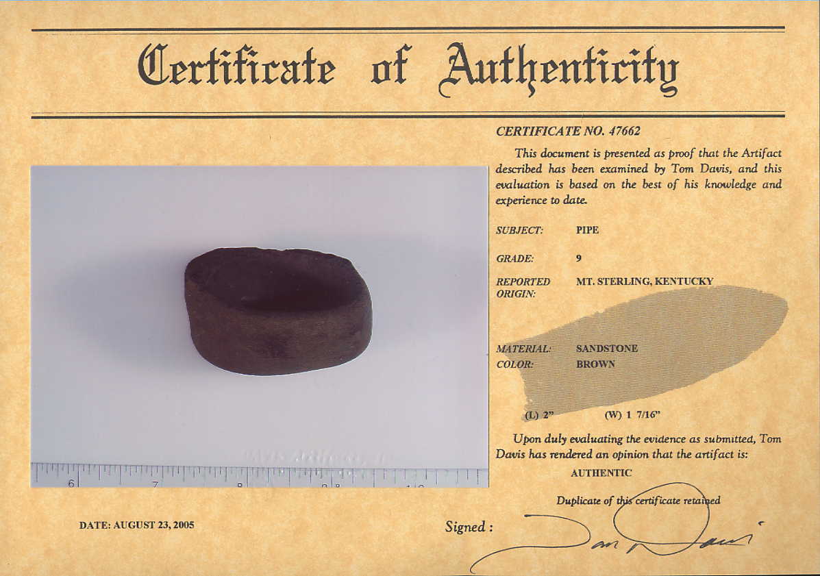 [ Paleo | Archaic | Woodland | Mississippian | HardStone | Pottery | Slate & Bone | Our Guarantee | How To Order | Home ]