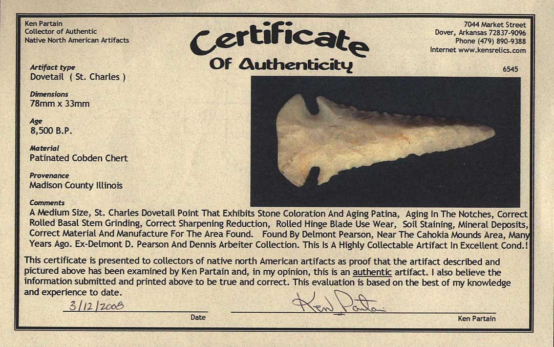 [ Paleo | Archaic | Woodland | Mississippian | HardStone | Pottery | Slate & Bone | Our Guarantee | How To Order | Home ]